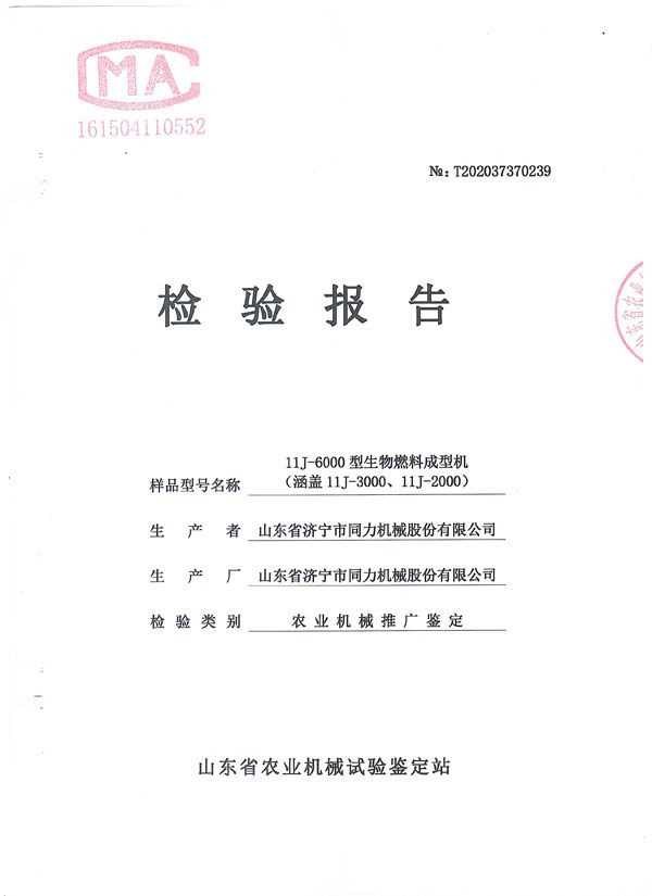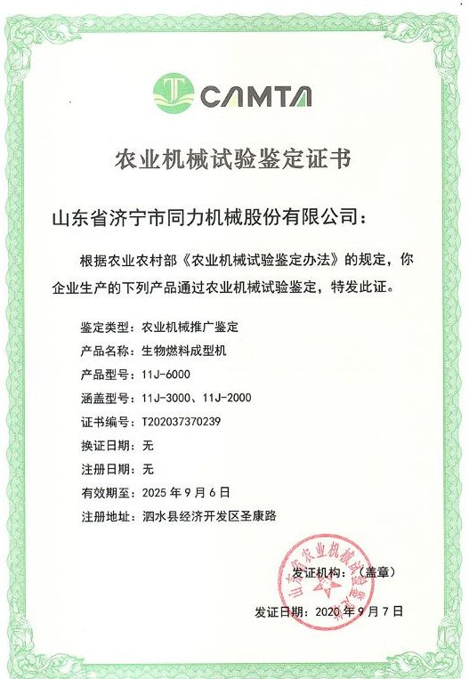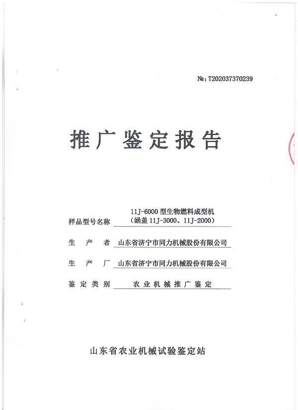 熱烈祝賀山東省濟寧市同力機械股份有限公司11J-6000、11J-3000、11J-2000產品通過了山東省農機鑒定站的農業機械推廣鑒定,獲得了山東省農業機械試驗鑒定證書。